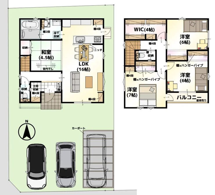 ファミリークローゼット4帖。家事が整う4LDK、駐車3台可×南西角地。陽だまりとゆとりの暮らし。